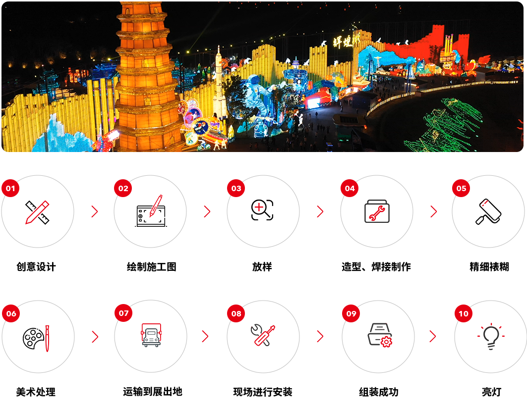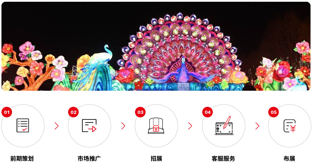公司的專業(yè)管理團(tuán)隊擁有30余年管理經(jīng)驗,有成熟的燈會全產(chǎn)業(yè)鏈服務(wù)體系,從事包括燈會選址、彩燈設(shè)計、制作、運輸、安裝、展出、守展、銷售、運營等全產(chǎn)業(yè)鏈業(yè)務(wù)內(nèi)容。