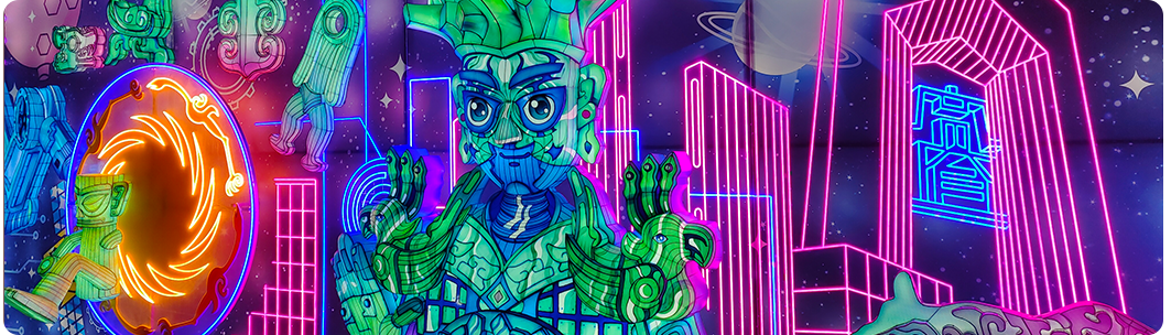 巧妙利用多種先進(jìn)的現(xiàn)代光源、全息投影、結(jié)合傳統(tǒng)手工藝等成熟技術(shù)手段支持創(chuàng)意實現(xiàn)
