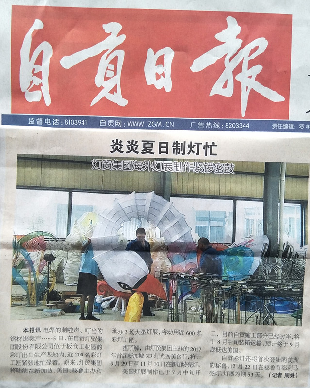 “日輪當(dāng)午凝不去,萬國如在洪爐中”盛夏的自貢驕陽似火。東方彩燈出口基地生產(chǎn)廠區(qū)內(nèi)一派繁忙,2017全球巡展燈組制作正緊鑼密鼓進(jìn)行中。參加燈組制作的工人揮汗如雨:燒焊、接線、切割、裱糊......一組組、一個(gè)個(gè)生輝溢彩、斑斕絢麗的彩燈在勤勞智慧的彩燈藝人手中呈現(xiàn)。