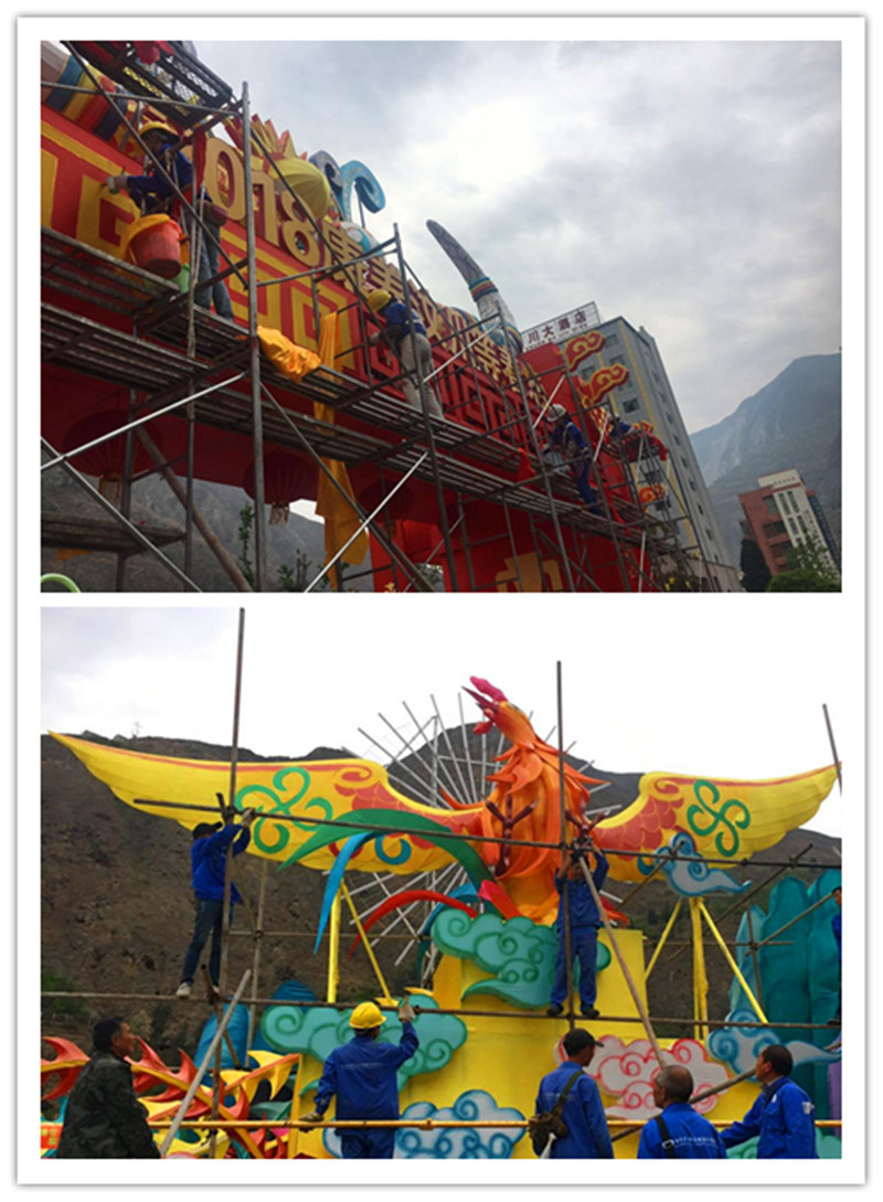 日前東方彩燈的能工巧匠們正對燈展現場部分燈組進行維護。新生的燈火汶川將更加璀璨奪目!
