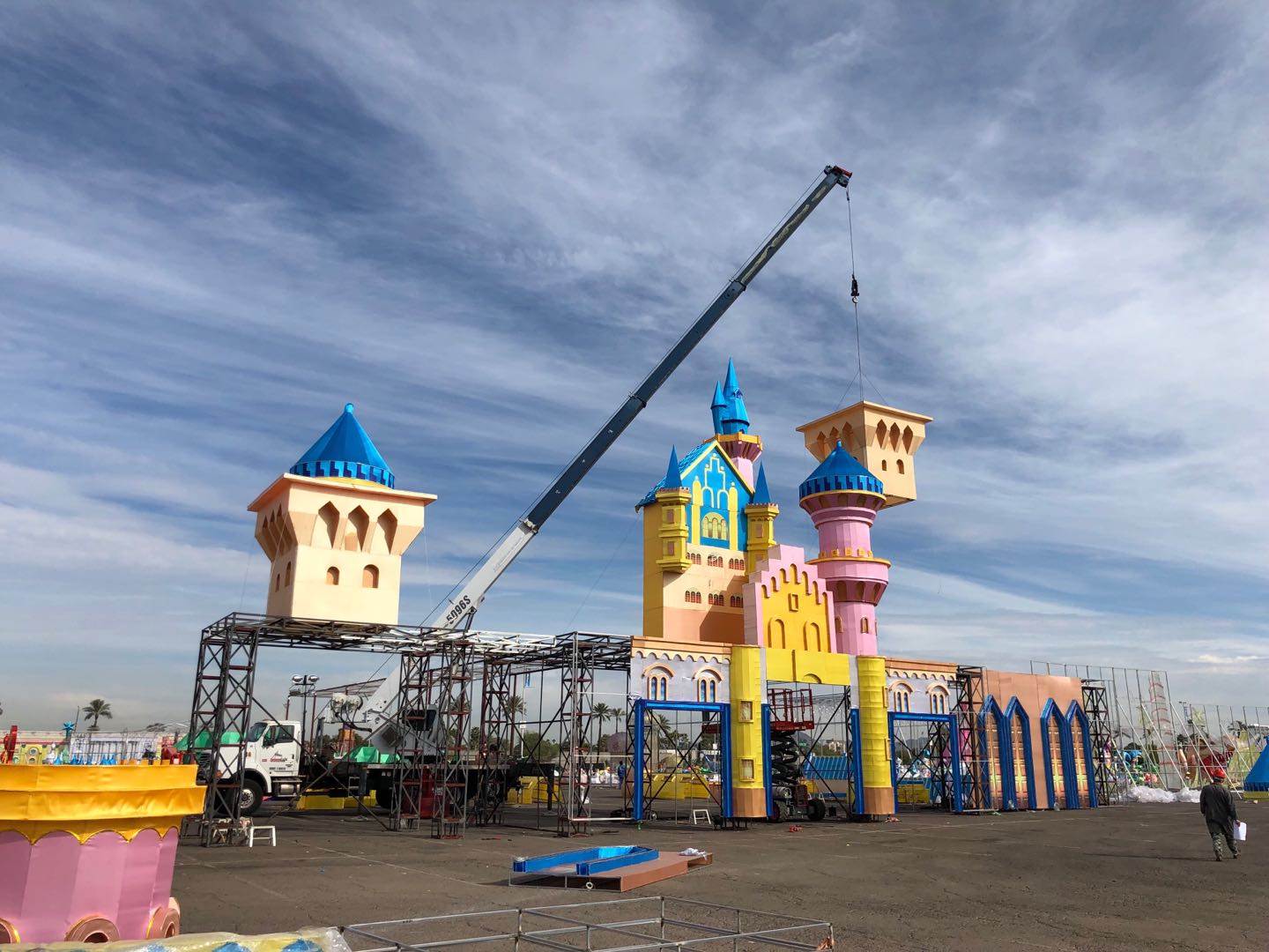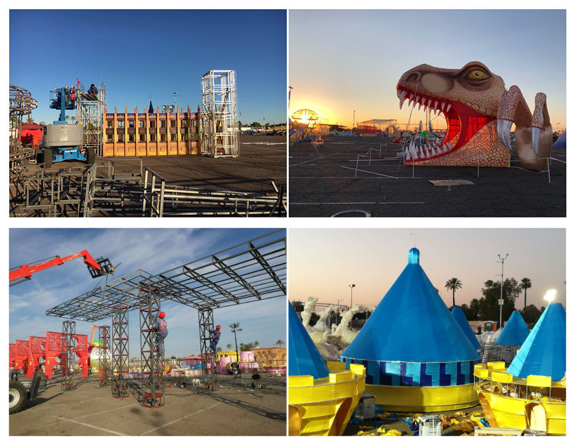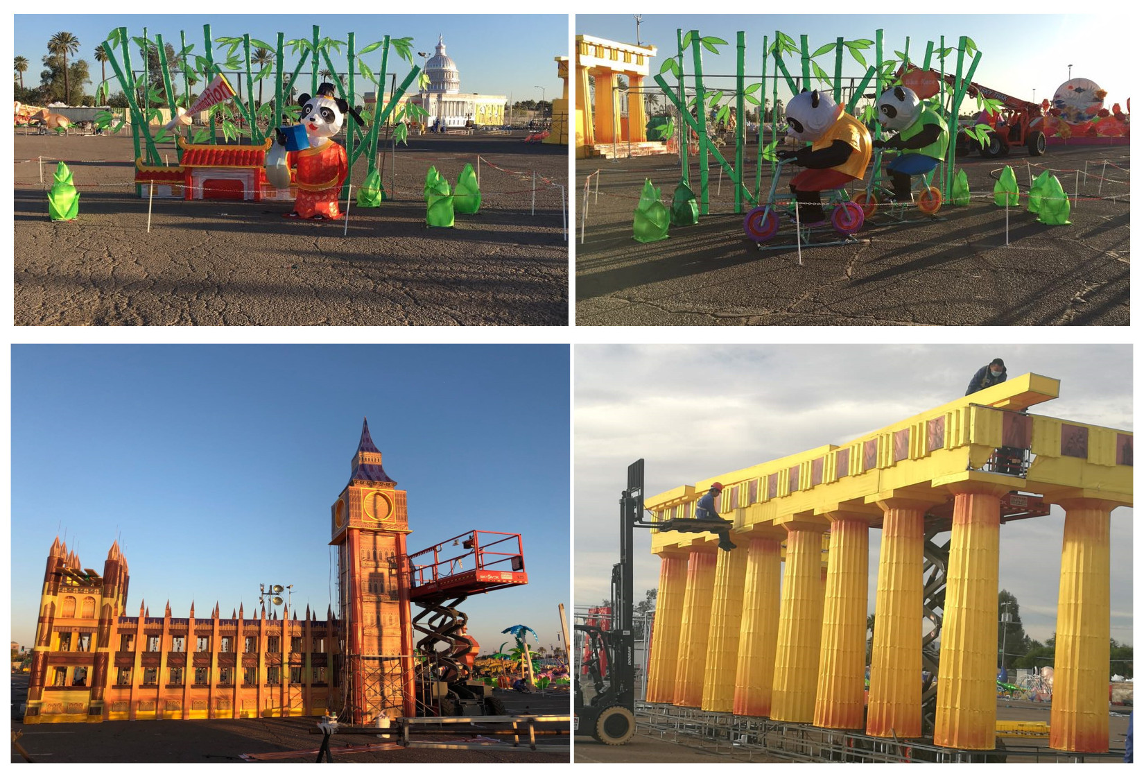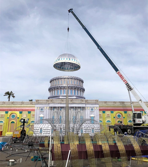 藍(lán)天白云、晴空朗朗,技藝高超的工匠師傅正將燈組配件完美的安裝到預(yù)定位置。每個(gè)人都在盡最大努力,希望用兩周后開幕的世界之光-2018菲尼克斯彩燈嘉年華”,為菲尼克斯及世界人民送上來自東方的圣誕祝福。