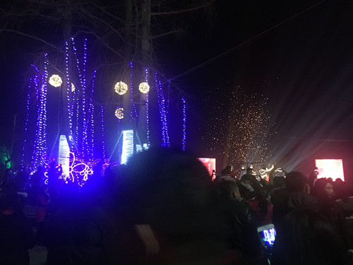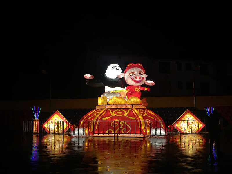 寓意著新的一年“豬”事順利,幸福吉祥。燈影下,潮水般涌動的人流,烘托出一個多彩而熱鬧的世界,享受著熱鬧喜慶的新年氣氛。