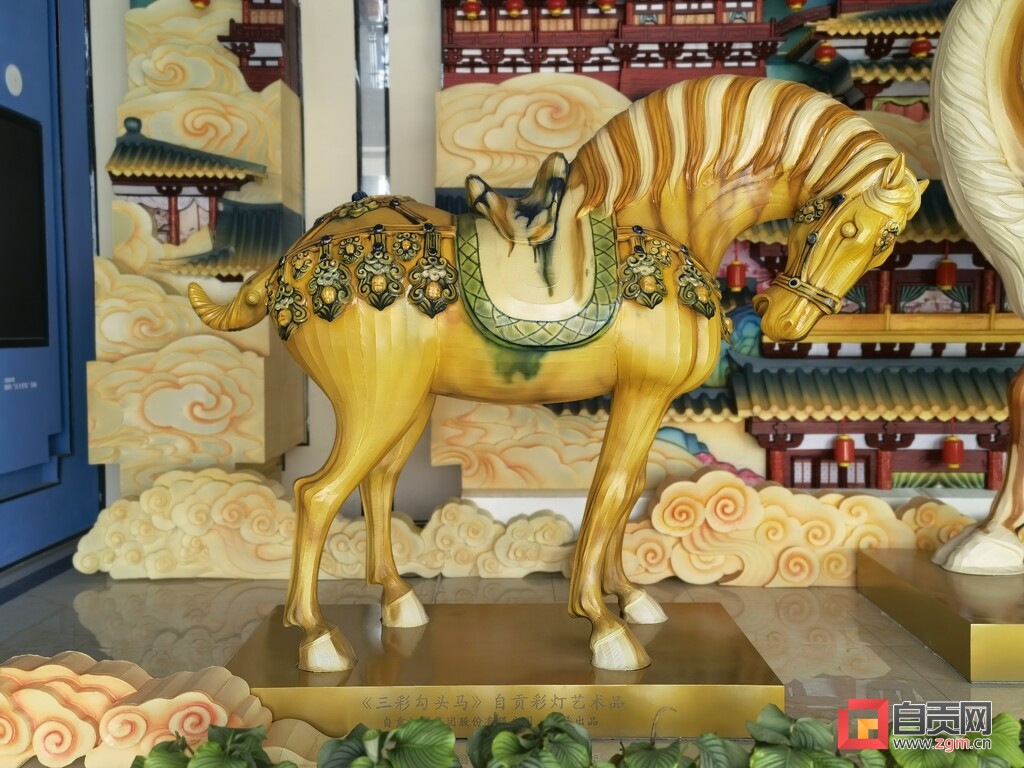 《唐風(fēng)華韻》系列燈組共有四座,分別是《三彩嘯天駱駝》《三彩勾頭馬》《三彩傾訴》和《三彩游春》,將自貢彩燈與唐三彩兩種非遺技藝全新融合,由自貢燈貿(mào)集團(tuán)股份有限公司設(shè)計(jì)制作。