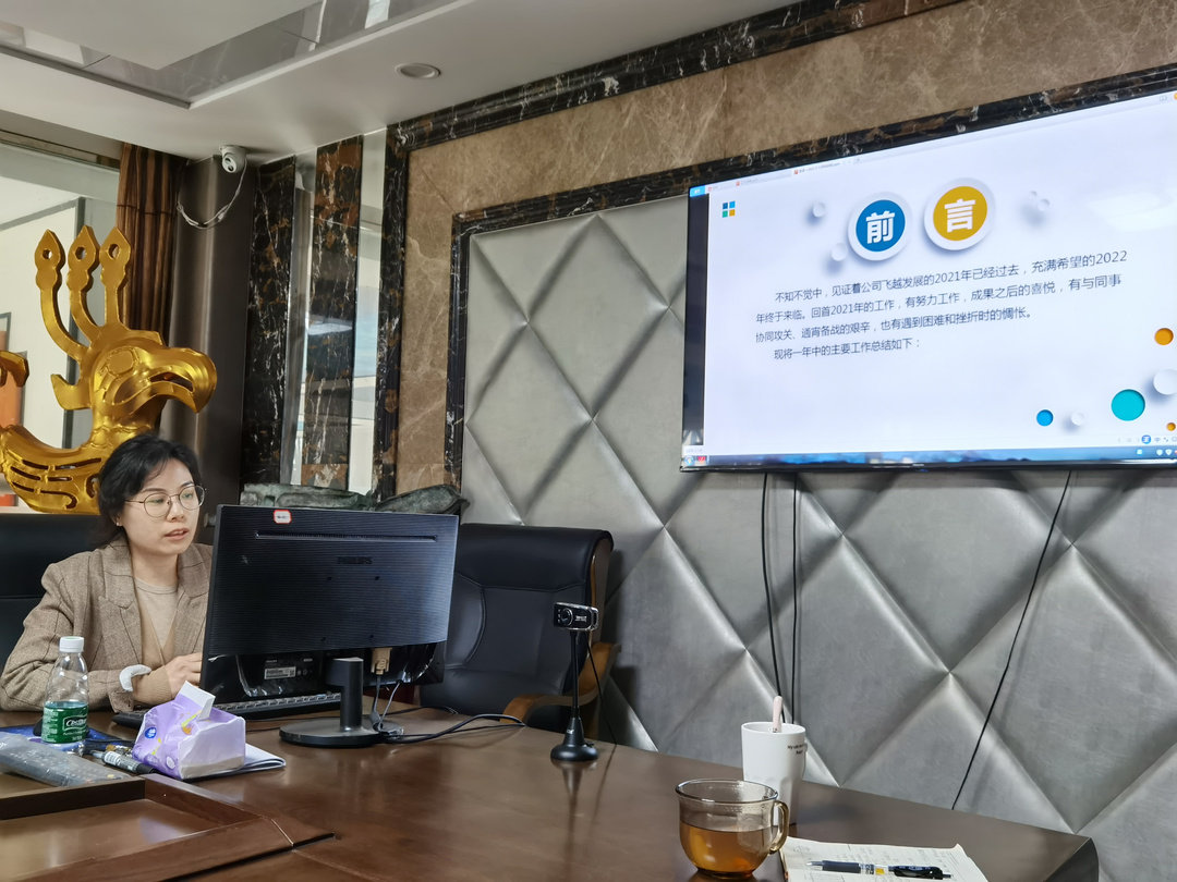 集團公司董事長劉婭作了總結發言。她對全體同仁在過去一年付出的努力、辛勞和智慧,表示感謝,對集團公司各分公司、各部門2021年在經營班子帶領下取得的成績給予充分肯定。她指出,2022年公司堅持以扁平化管理,努力拓展市場,每位員工都要保持“狼性思維”,才能在激烈的行業競爭中保持前進步伐。