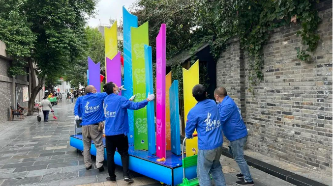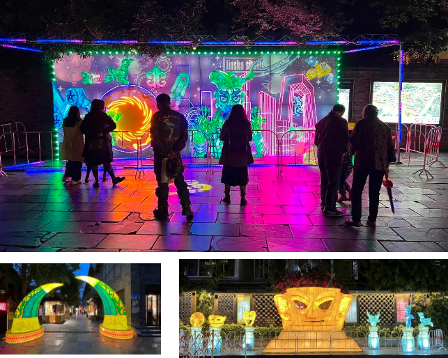 金沙遺址是距今3000年前古蜀王國的都邑所在地,是成都城市史的開端。而寬窄巷子所在的少城地區,則是秦并巴蜀后成都城的中心區域。從秦漢到清代,這一區域奠定了“老成都”的布局基礎。此次古蜀文明彩燈光影藝術展的舉辦,讓攜帶著古蜀文化基因的金沙面孔與秦漢、隋唐、清代的成都相遇,以藝術化的形式向游客呈現“創新,創造,優雅,時尚,樂觀,包容”的天府文化。