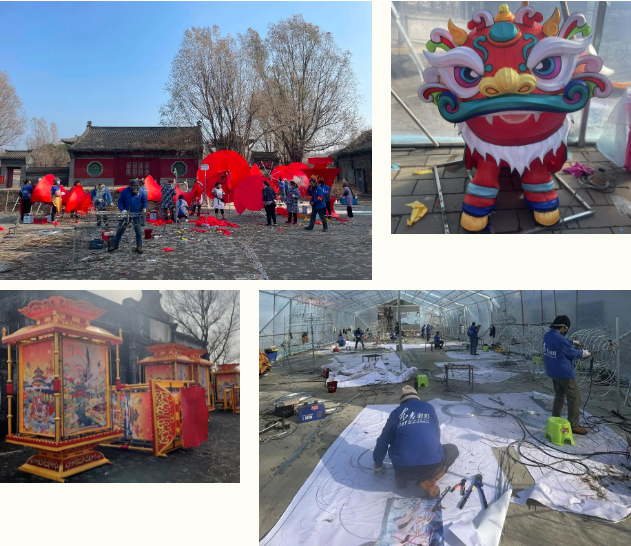 寒風凜冽,雪花紛飛,制燈現場,到處是東方彩燈工匠們忙碌的身影。整個燈展工作正緊鑼密鼓地進行中。